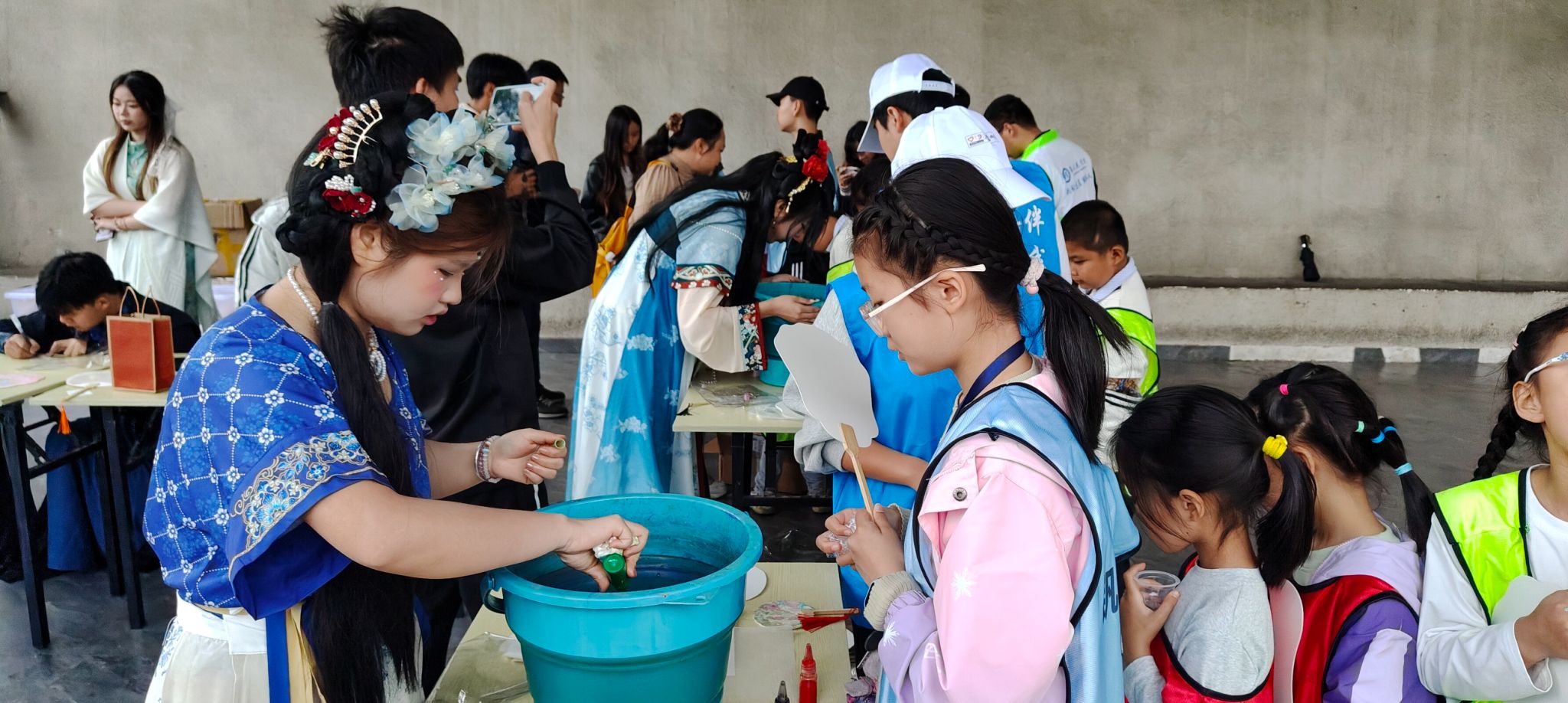 在田径运动场,孩子们可以自主选择参与非遗漆扇制作,在扇面上绘出五彩斑斓的童真世界,体验传统手工艺的魅力;也可以加入飞盘游戏,在奔跑、传接中学会合作与坚持。
