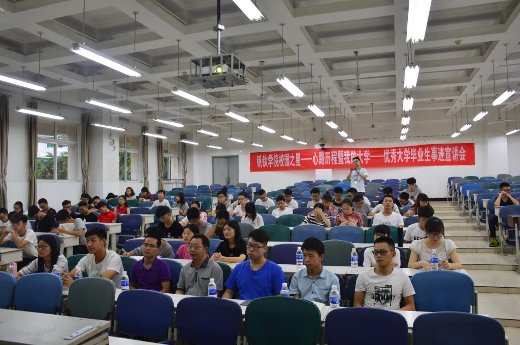 本报讯(敖锐、钟弈报道)2018年6月1日晚上,钒钛学院校园之星—心路历程暨我的大学—优秀大学毕业生事迹宣讲会在二教2—2隆重举行。陈今良和魏大恩老师出席本次宣讲会,钒钛学院团委学生会主席团成员以及2016级、2017级学生代表参与本次宣讲会。