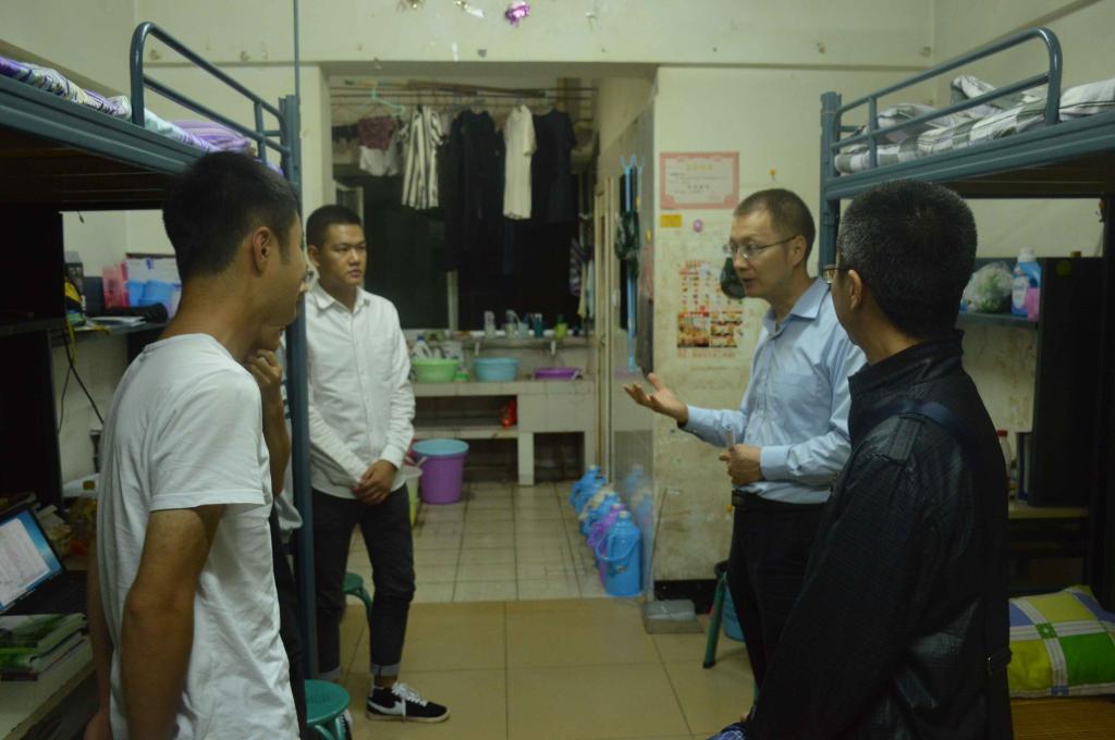 我院领导及团委学生会成员兵分四路,有针对性、目的性的对宿舍进行检查。对大一到大四的学生宿舍进行了全面视察,我院领导亲切慰问了国庆节期间留校学生,询问了这些学生在假期中的安排,希望同学们劳逸结合,注意放假期间的安全问题和宿舍的安全,关心同学们之间的交流。宿舍检查过程中,气氛融洽,是一次加强我院老师和学生会与我院全体学生联系的交流会。同时,也是领导们对学生生活进行的一次深入了解。