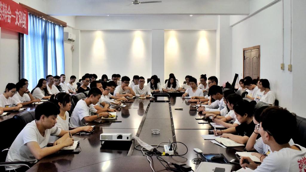 会议上,首先主席团成员对各自负责的部门及工作作了简单介绍。随后,主席团成员重点作了迎新事宜安排,例如新生报道流程、新生宣传、各部门招新宣传等工作安排,并落实到了各个部门。最后,江老师就新生宿舍安排、迎新注意事项作了强调,并希望在大家的协作下,能圆满完成迎新工作。