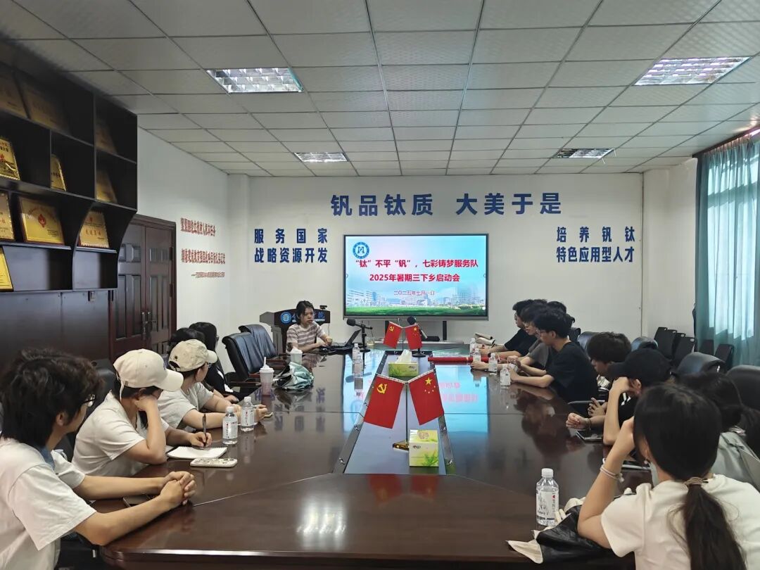 6月30日上午,钒钛学院在砺志楼广场举行了2025年“青春攀大,共富有我”暑期“三下乡”社会实践活动出征仪式。钒钛学院分团委共组织7支队伍参与暑期社会实践,带队老师有新能源专业徐众、侯静老师,学生科科长李宏,辅导员鲍丽莹、王婷、朱艳芳等。