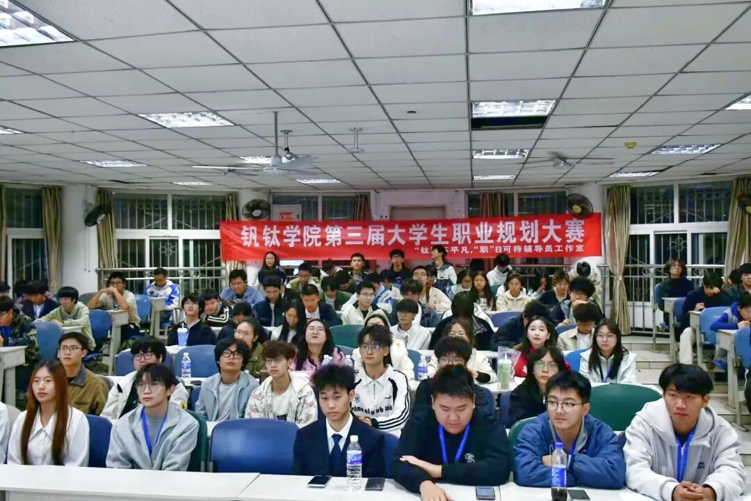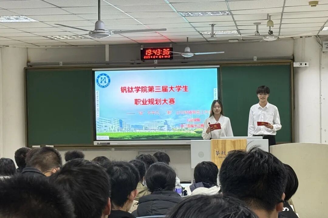 2025年12月10日下午,钒钛学院于尚学楼2-217开展了第三届大学生职业规划大赛。学生科科长李宏、2025级辅导员沙彩云、2023级辅导员王婷、学生科胡莉等老师出席此次评选活动,19位候选人参与竞选演讲,学生会成员及大一大二学生参与此次活动。