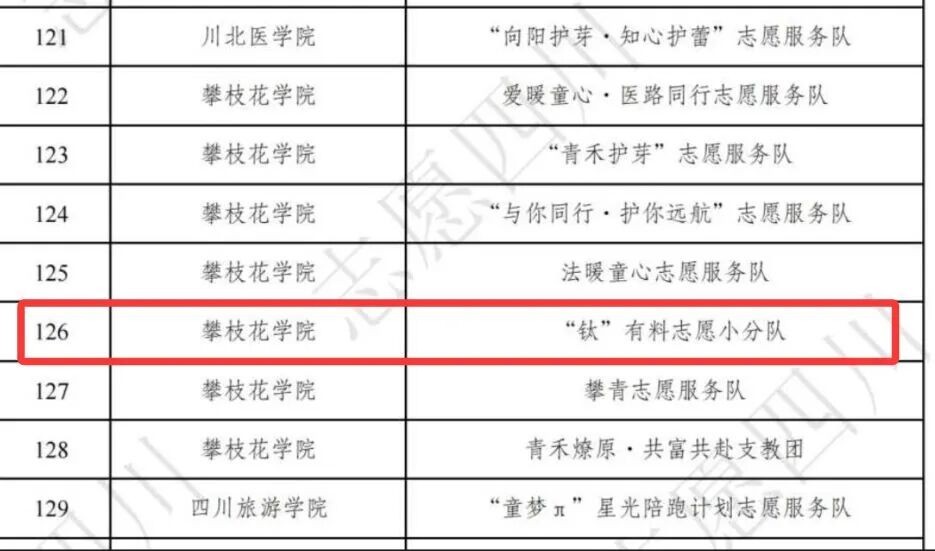 为落实习近平总书记关于志愿服务的重要论述,关爱留守儿童、困境儿童等青少年群体,四川发起“青青陪伴·志愿有我”大学生志愿服务专项行动。活动收到61所高校412支团队申报,经评审遴选出183支队伍入选,钒钛学院的“钛”有料志愿小分队成功入选。
