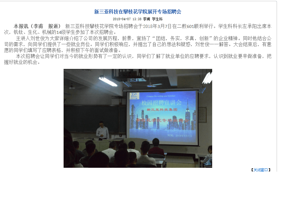 新三亚科技到我院举行专场招聘