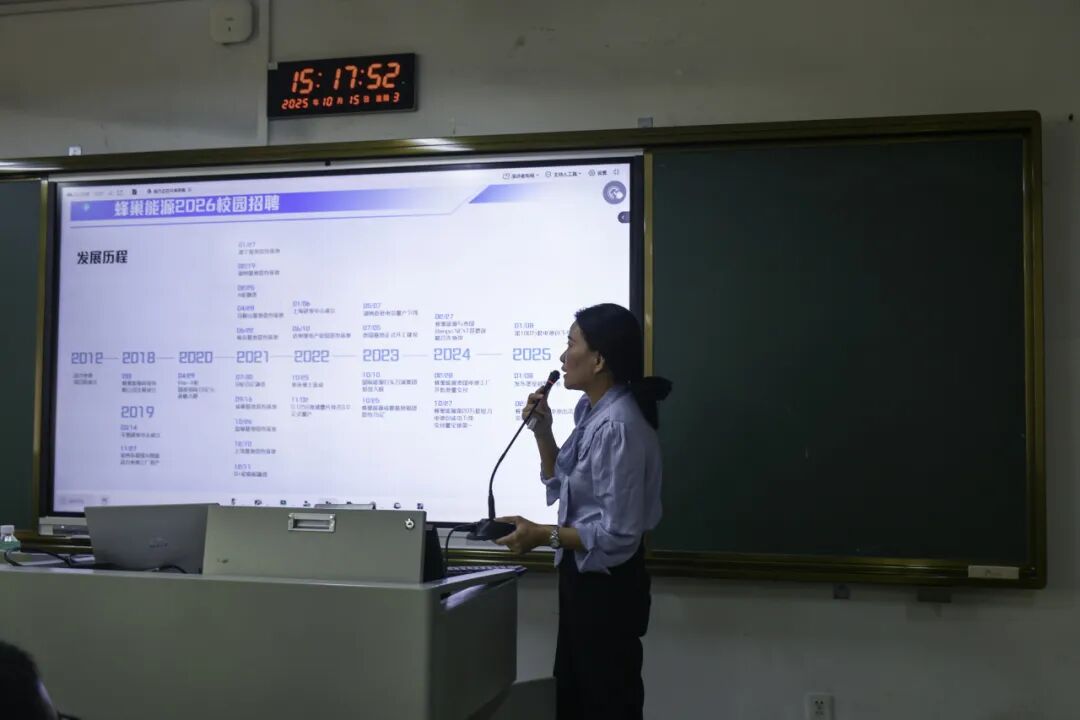 下午3点,蜂巢能源科技股份有限公司在尚学楼2-506教室举办招聘会,为新能源领域人才培养与输送搭建了重要桥梁。