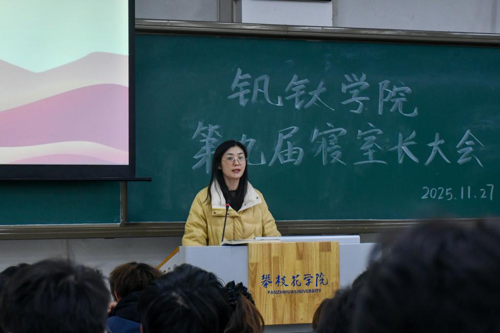 11月27日晚上,钒钛学院第九届寝室长大会在尚学楼316教室圆满举行。学生科科长李宏、分团委书记鲍丽莹、各年级辅导员,以及全体寝室长参加了本次会议,共商寝室管理与文化建设事宜。
