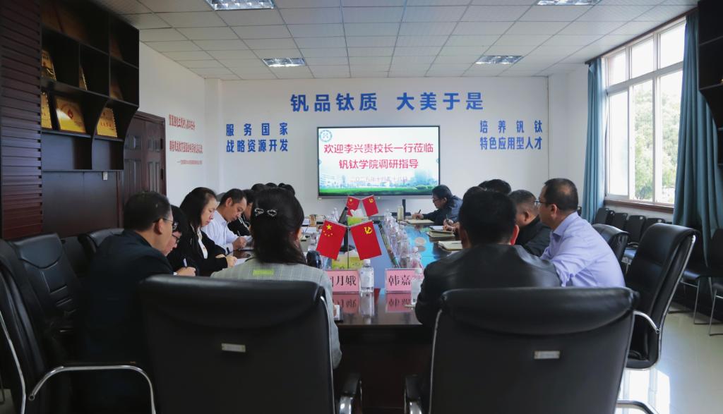 10月28日上午,学校党委副书记、校长李兴贵赴钒钛学院开展专题调研指导工作,党政办、人事处、教务处、科研处、研究生处相关负责人陪同调研。学院党政领导班子、科级干部及省级科研平台负责人参加会议。