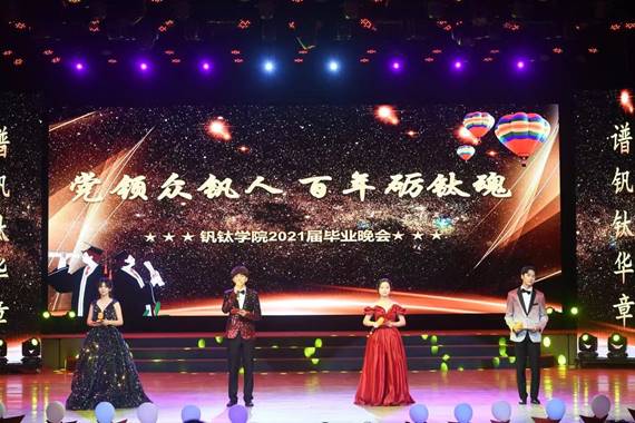 5月22日晚,钒钛学院2021届毕业晚会—“党领众钒人,百年砺钛魂”在学生会堂顺利举行,出席本次晚会的嘉宾有院长蒋志强,副院长吴恩辉,院长助理兼办公室主任安昀,马兰教授,学生科老师,各级辅导员老师等,钒钛学院及各院部分学生参加。