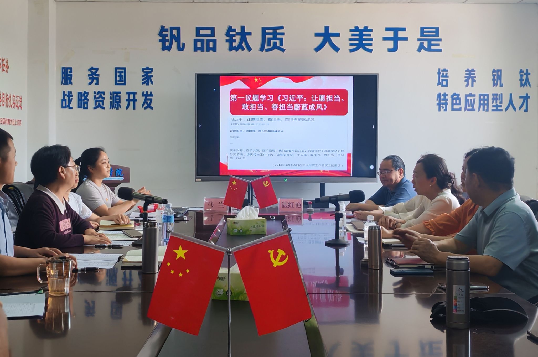 为深入践行正确政绩观,规范招标采购工作流程,提升服务保障效能,推动党建与业务工作深度融合,2026年4月1日,机关第十一党支部与钒钛学院党委在砺志楼303会议室联合开展“践行正确政绩观 规范招标采购 提升服务保障”主题党日共建活动。钒钛学院全体教工党员、机关第十一党支部全体党员参加活动,活动由钒钛学院党委副书记马兰主持。