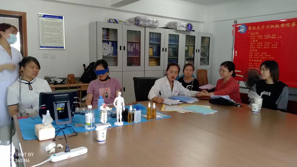 (本报讯 方嘉靖 报道) 学党史,弘扬祖国传统中医养生文化,提高师生群众们治未病及中医养生意识,钒钛学院党委特邀请“成都尚道中医学研究院”调研人员于学院励志楼负一楼学生活动中心进行了义务健康指导及义诊活动。活动开展时间为:2021年5月17至2021年5月21日上午9:30—12:00和下午14:30-17:30,在一周的时间里,共计服务师生群众100余人/次。
