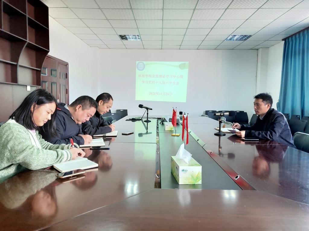 为了深入学习贯彻党的十九届六中全会精神,钒钛学院于11月24日组织教职工集中学习会议精神,11月26日召开学院党委理论学习中心组会议进行专题研讨。会议由学院党委副书记、纪委书记蒲洪主持。