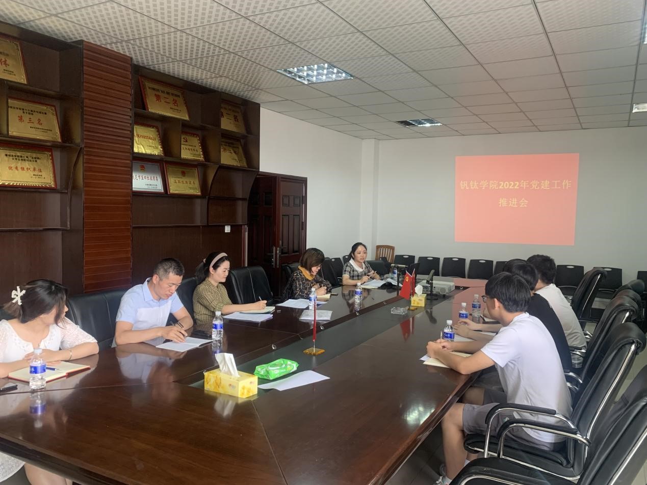 (本报讯 彭志坤)2022年3月23日下午三点,钒钛学院党委书记王鹃于励志楼303会议室召开党建工作推进会,学院党支部书记及党建部同学参加。