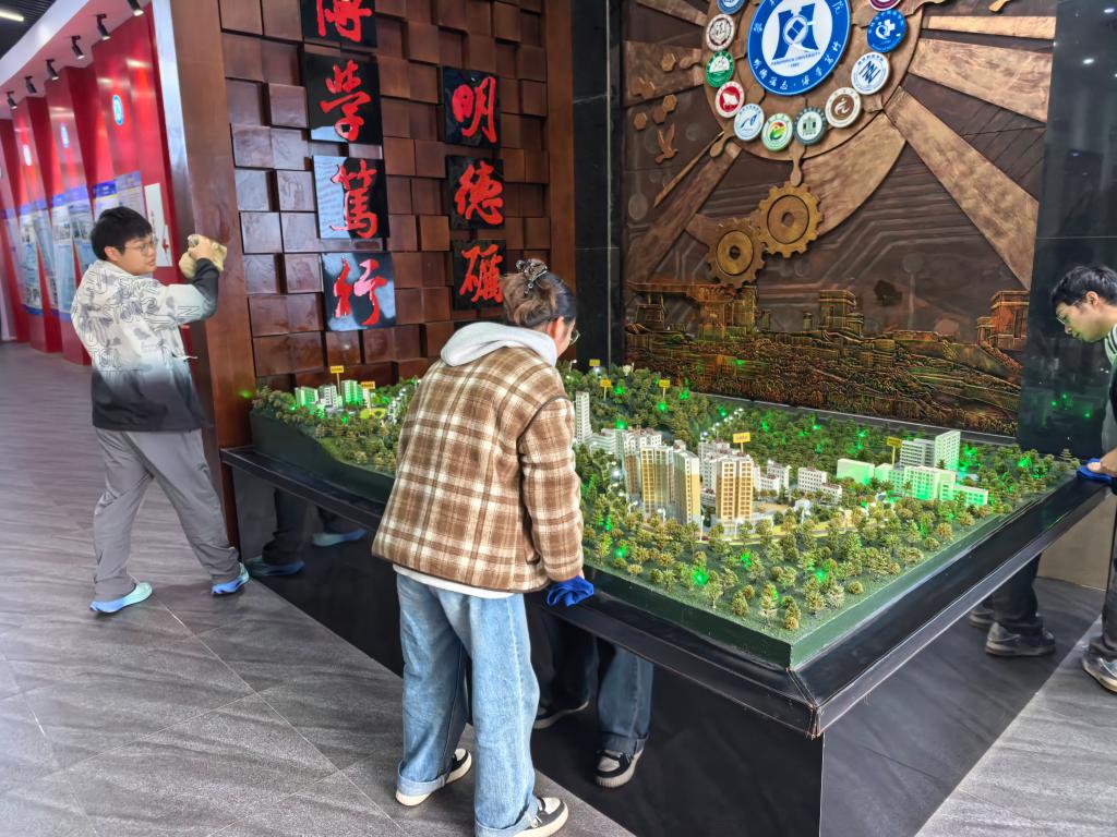 校史馆作为学校历史与文化的重要载体,承载着学校的发展历程与精神积淀。在清扫过程中,毕业生党员分工明确、协同配合,细致清洁展柜、认真擦拭历史展板、彻底清扫地面。通过一尘一帚的躬身实践,党员们不仅使校史馆焕然一新,更在劳动中深切触摸学校历史的脉络,体悟校史背后蕴含的奋斗精神与文化传承。