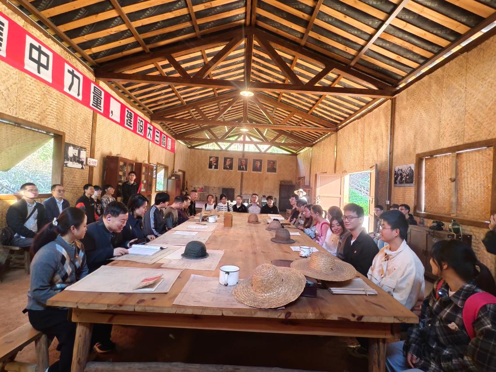 在共进创业饭后,一场别开生面的红色教育微党课在基地现场举行。学院党委副书记马兰,党委副书记、纪委书记蒲洪、组织员霍红英讲授微党课,与全体党员围坐一堂,结合上午的所见所感所体验,深入阐述了“艰苦创业、无私奉献、团结协作、勇于创新”的三线精神内核。 他们强调,全体党员要从这段波澜壮阔的历史中汲取智慧和力量,将“火红年华”中蕴含的奋斗基因融入血脉,立足本职岗位,在科技攻关、人才培养中勇担重任,为钒钛学院与学校的高质量发展贡献先锋力量。这堂在历史发生地开展的“沉浸式党课”,打破了传统课堂的界限,使理论灌输变为情感共鸣,让红色教育真正入脑入心。