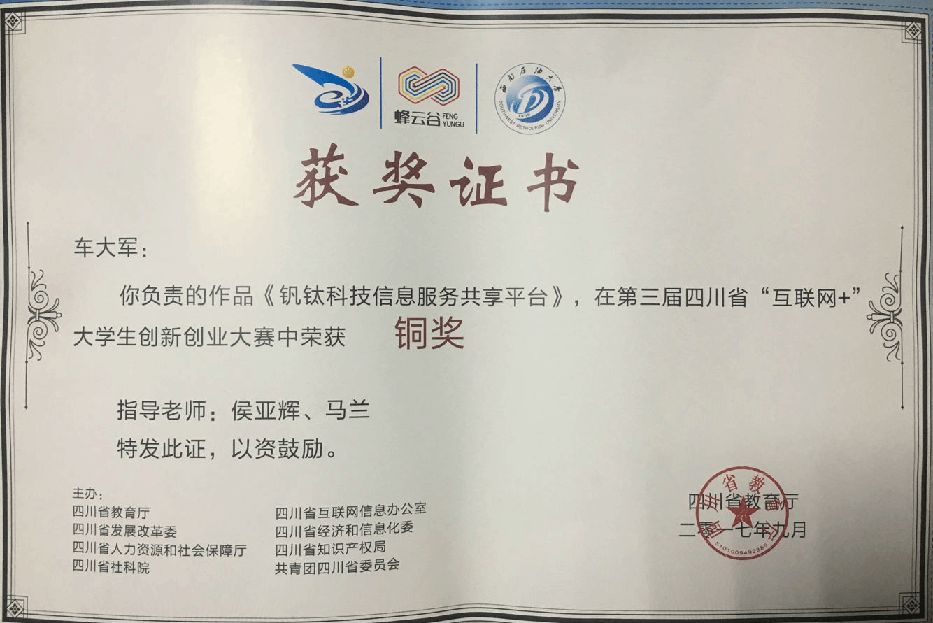 车大军,男,2013级金属材料工程校友。现任攀枝花市爱卓网络科技有限责任公司总经理。曾组建“爱作社”创业团队,搭建校园移动社交平台,2016年05月攀枝花市东区“攀商杯”青年创业大赛中,获得大赛“第一名”和“逐梦奖”。2017年6月“钒钛科技信息服务共享平台”代表攀枝花学院获得“第三届四川省互联网+大学生创新创业大赛”省级铜奖。