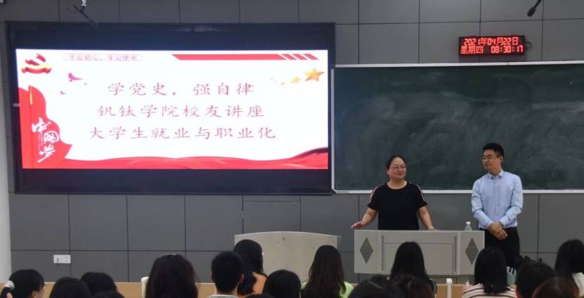 2021年4月22日上午,我院于二教111开展“大学生就业与职业化”校友讲座。由优秀校友陈旭担任主讲人,党委副书记兼纪委书记马兰、2018级辅导员孙尚出席本次会议,18级部分学生参加。