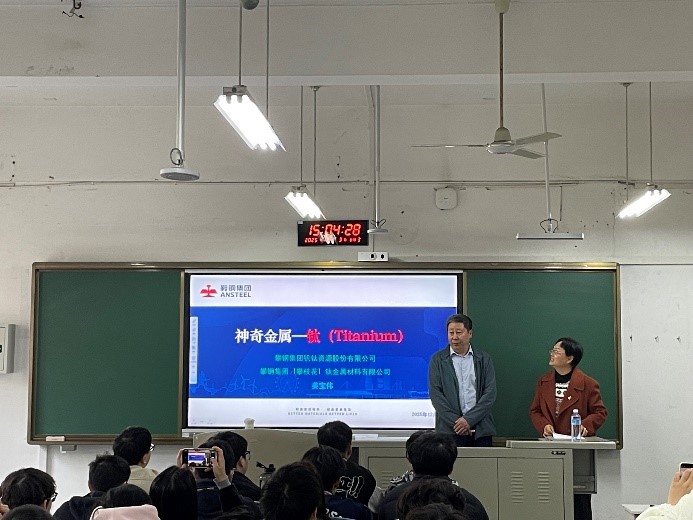 2025年12月3日下午3时,受攀枝花学院钒钛学院党委副书记马兰邀请,攀钢集团高级专家姜宝伟莅临我校,以《神奇的钛金属》为题开展学术报告。钒钛学院师生代表参会聆听,现场学术氛围浓厚。