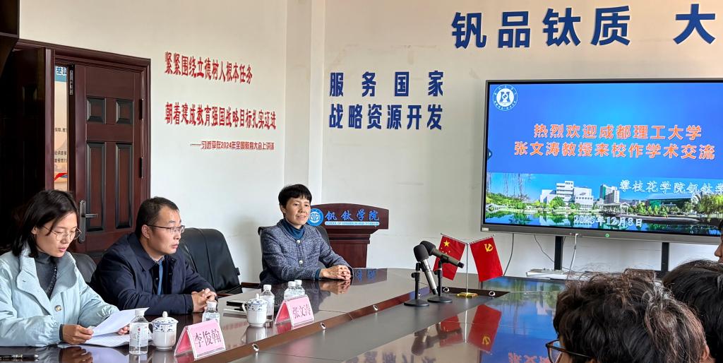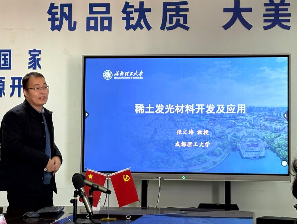 为深化稀土战略资源前沿研究,推进学科交叉与特色人才培养,12月8日下午,钒钛学院特邀成都理工大学张文涛教授担任主讲,在砺志楼303举行成功举办“稀土发光材料开发及应用”学术讲座。本次讲座由钒钛学院副院长李俊翰主持,钒钛学院师生积极参加,现场学术氛围浓厚。