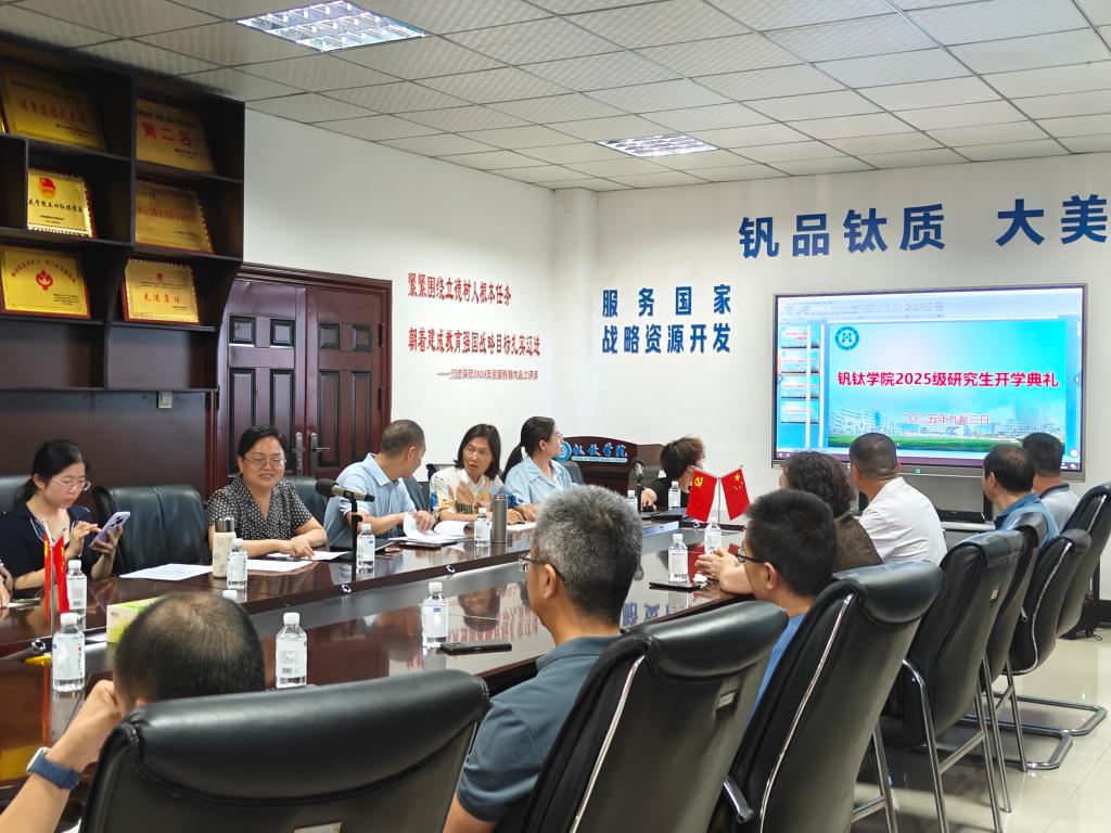 为帮助2025级研究生快速融入校园生活、了解学院基本情况、增进师生情谊。钒钛学院于9月3日下午在砺志楼303会议室举行了2025级研究生新生见面会及入学教育会议。学院领导班子、研究生导师、研究生管理科、研究生辅导员、2024级优秀学生代表、2025级全体研究生新生参会。会议由开学典礼、认知教育、研究生导师见面会三部分组成,钒钛学院副院长张皓主持会议。